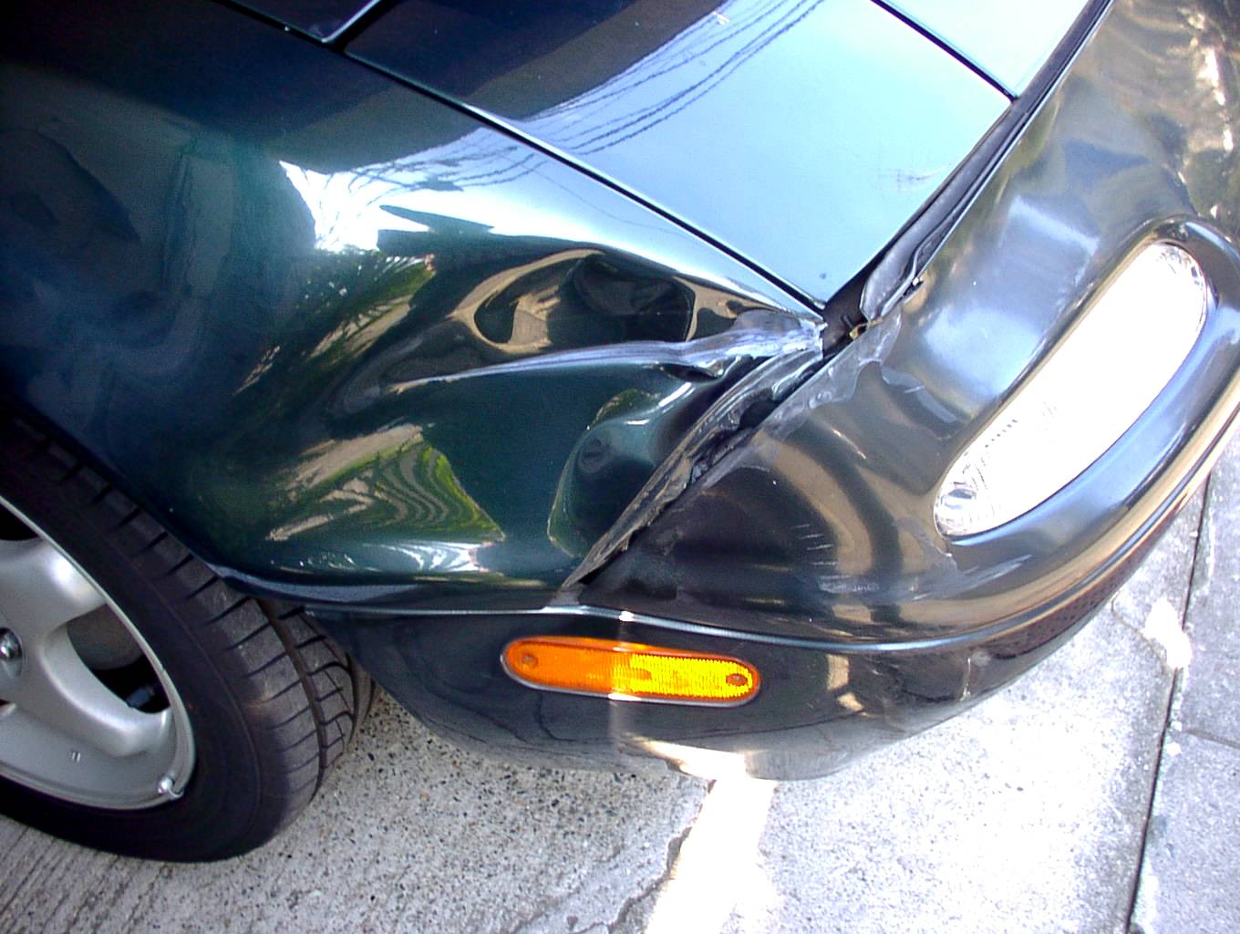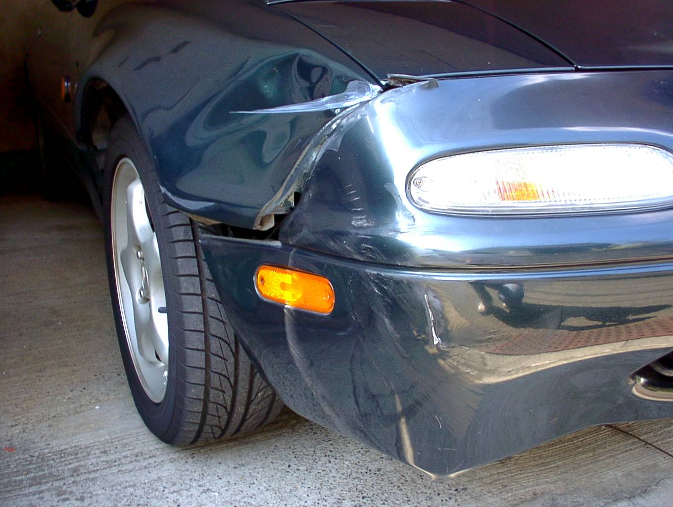 一応相手の保険屋が出てきてくれて、向こうの保険で直してくれそうなんですが、1週間以上車に乗れないし(通勤どうするんだよ!)、バンパーとフェンダー交換でその部分だけ色は変わるは、2万5千円もかけたハイドロテクトコートはなくなるは、踏んだり蹴ったりじゃ。