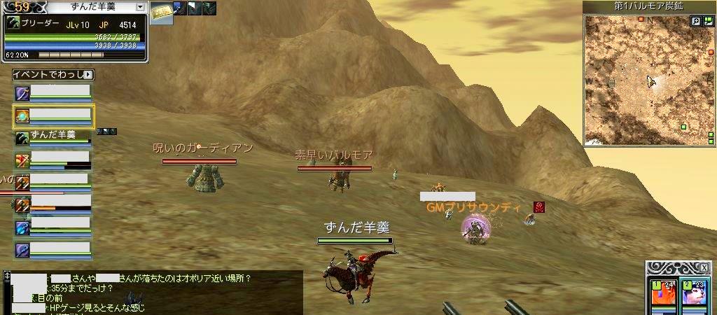 3分前くらいからみんなバルモア炭鉱へ入りはじめたので、PKON状態のプリサウンディ様を見学してみました。
